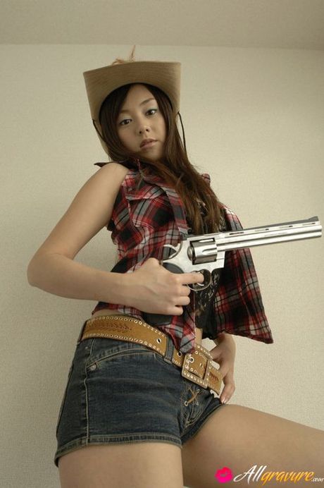 All Gravure: Adorable asian cowgirl tempts in her boots and jean shorts