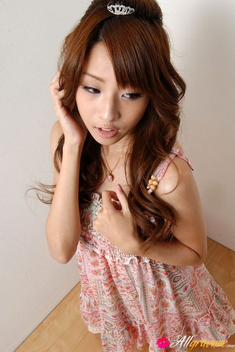All Gravure: Adorable asian fox with long hair in a short pink dress