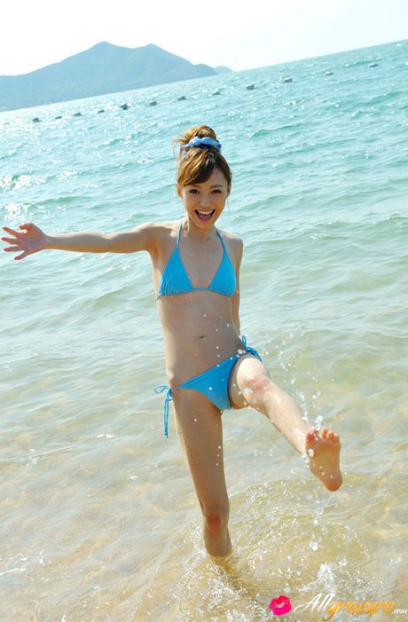 All Gravure: Aino Kishi Asian in blue bath suit is a true beauty enjoying sand