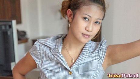 Trike Patrol: Amateur Asian babe Shane strips and shows her hairy pussy up close