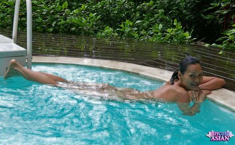 My Cute Asian: Amateur Asian girl with tiny tits strips and displays her hairy cunt