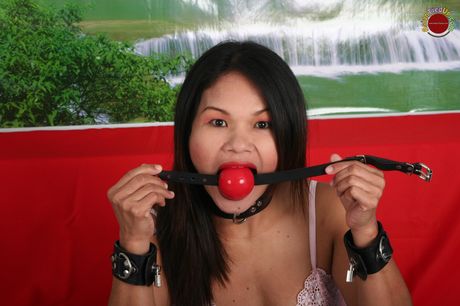 Asian Tied Up: Amateur girl with a big butt strips and shows her pussy in a solo
