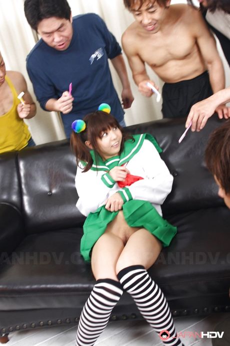 Japan HDV: Amazing japanese dark hair milf Hikaru Aoyama in sexy skirt exposing bald pussy