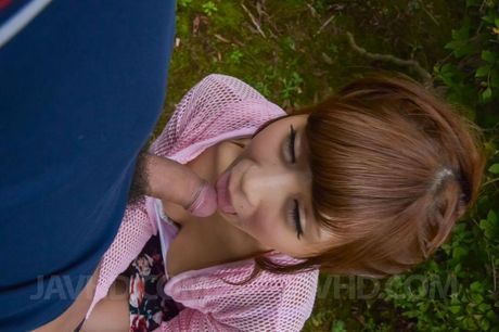 Jav HD: Anna Anjo Asian in blouse sucks dick and gets cum from it outdoor