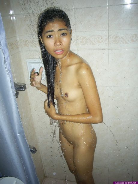 LBFM Addiction: Asian amateur girl with tiny tits strips and washes her knees in the shower