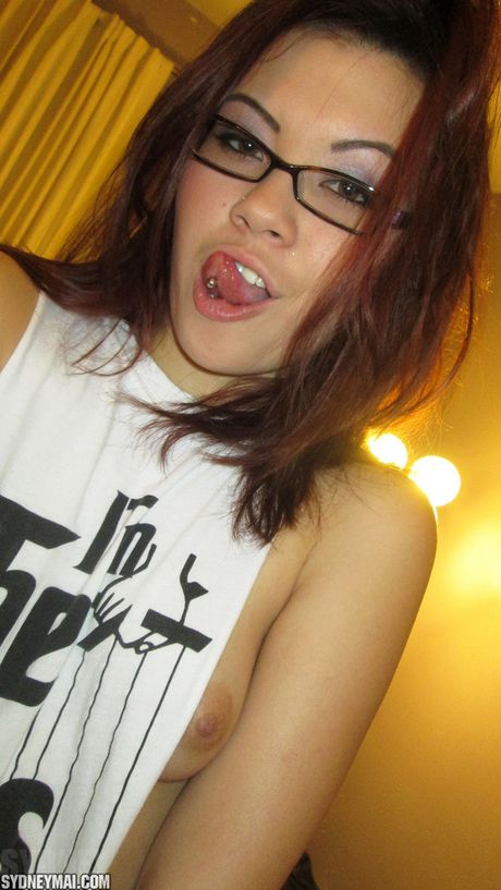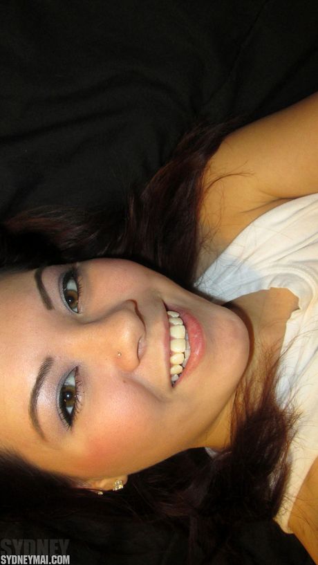 Pink Velvet Vault: Asian amateur Sydney Mai shows her amazing racks and toys her pussy on a bed