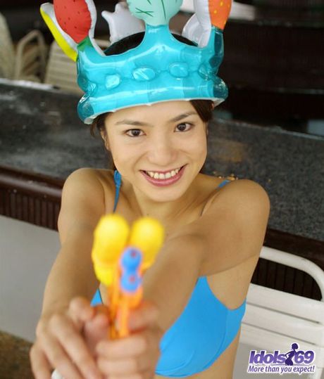 Idols 69: Asian babe Anna strips and shows her big melons and ass in the pool
