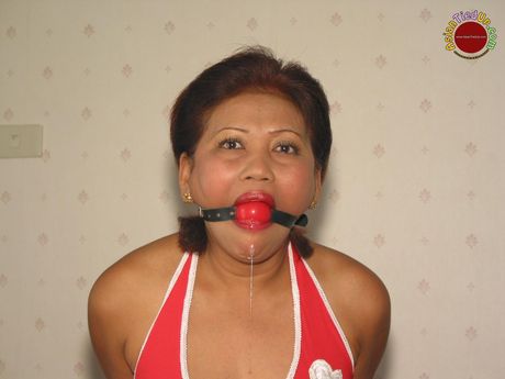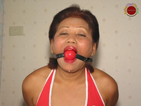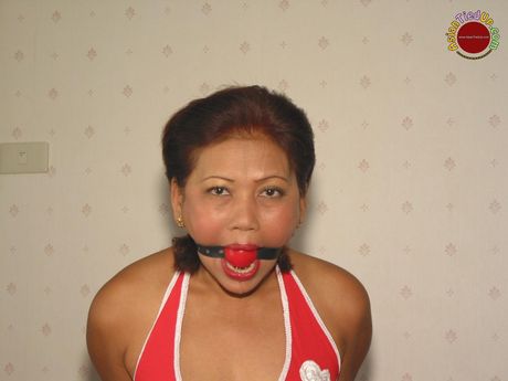 Asian Tied Up: Asian cougar amateur strips and shows her hot body in a solo