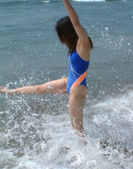 City Invasion: Asian schoolgirl in a bikini strips and shows her tits and pussy outdoors