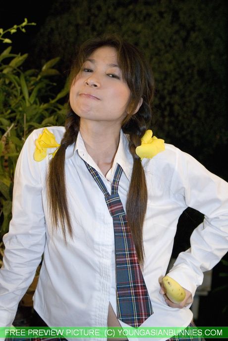 Hot Bunny Promotion: Asian schoolgirl Mekumi strips off and unveils her tiny tits and pussy