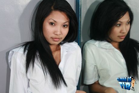 Filipina 18: Asian schoolgirl with tiny tits strips and shows her pink pussy up close