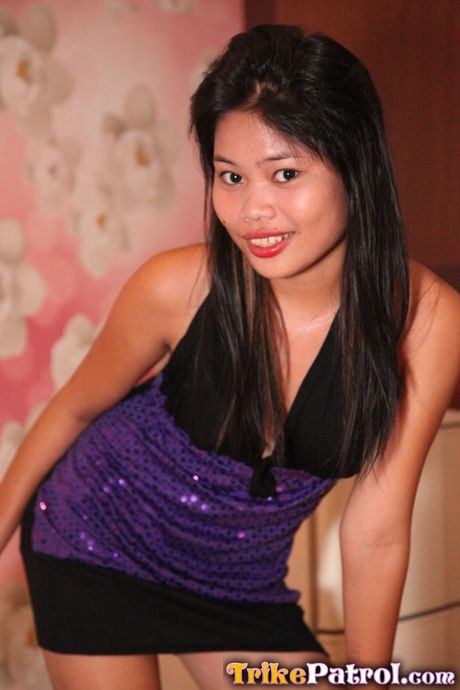 Trike Patrol: Asian teen Alona strips and shows her small tits and pink pussy
