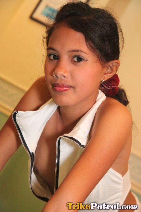 Trike Patrol: Asian teen Angel strips and shows her tiny tits and pink pussy