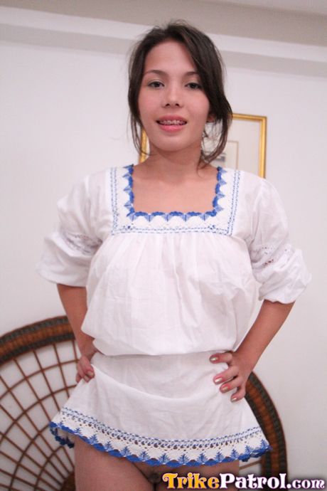 Trike Patrol: Asian teen Ann strips and shows her small tits and pink pussy up close