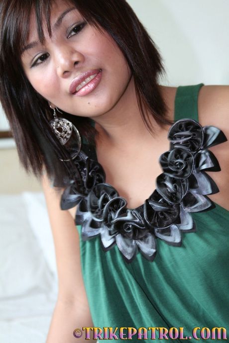 Trike Patrol: Asian teen Charo strips to her stockings and shows her tiny tits and ass