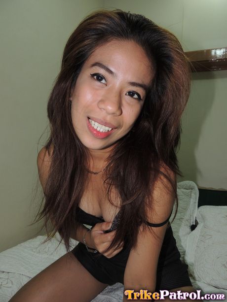 Trike Patrol: Asian teen Chelsy strips and shows her small tits and hot ass on the beach