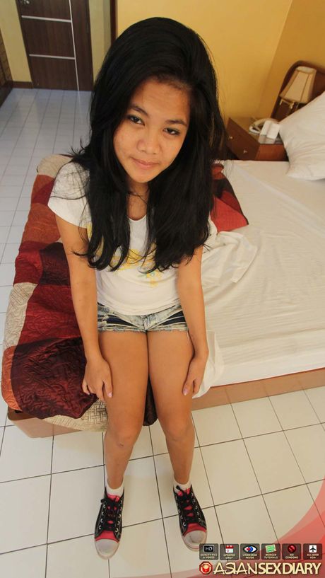 Trike Patrol: Asian teen Cristel strips and shows her tiny tits and shaved pussy