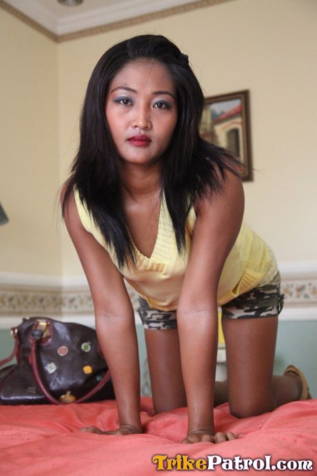 Trike Patrol: Asian teen Maricel strips and shows her tiny tits and pussy up close