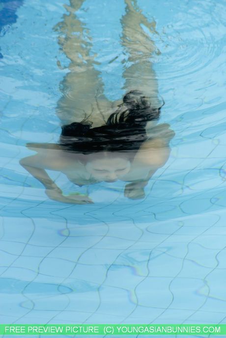Hot Bunny Promotion: Asian teen Michaela shows her small tits and her hot ass in a pool