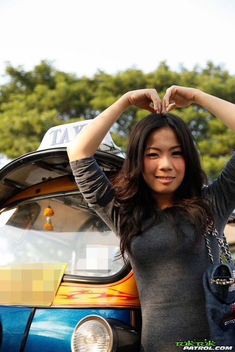 Tuk Tuk Patrol: Asian teen Nanny strips and rides a dick after a striptease in a public place