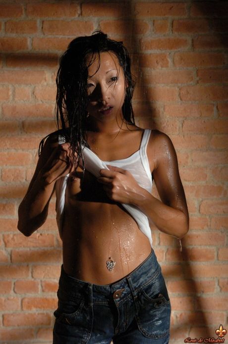 Louis De Mirabert: Asian teen Phaelin strips and rubs her twat after a hot striptease