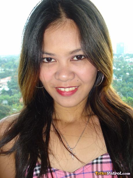 Trike Patrol: Asian teen Rain strips and shows her hairy pussy up close in a solo