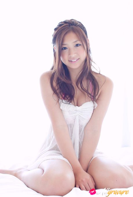 All Gravure: Ayaka Sayama Asian smiles while revealing curves in red lingerie