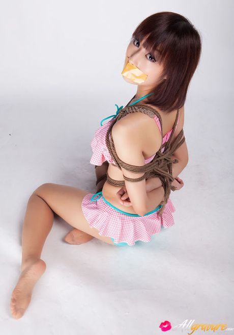 All Gravure: Ayako Asian leering babe has big smile on face as is tied in rope