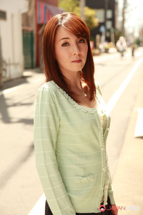 Japan HDV: Chika Sasaki in green sweater and short skirt poses on the streets.