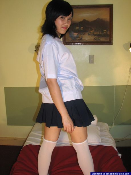 Schoolgirls Asia: College student dropping her panties to flash her bald gate of Heaven