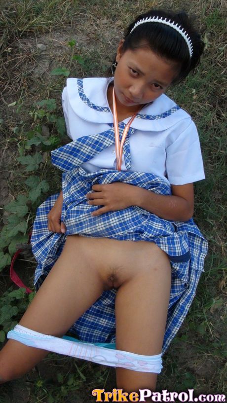 Schoolgirls Asia: Cute Juna drops her bikini and spreads her legs to flash her hairy muff