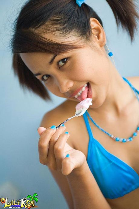 Lily Koh: Delicate Asian Lily licks cream off her soft lips