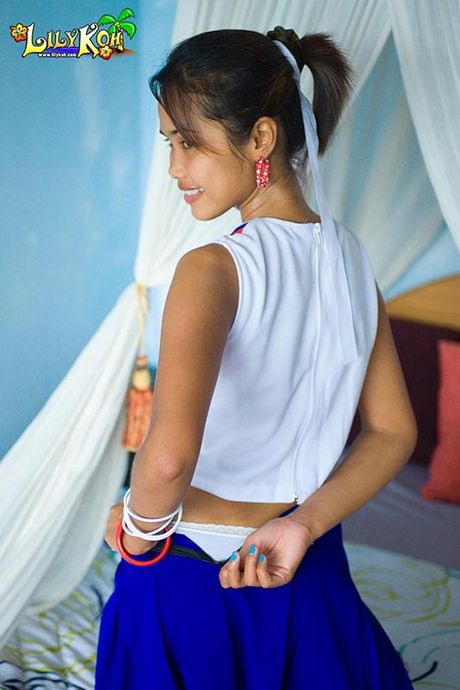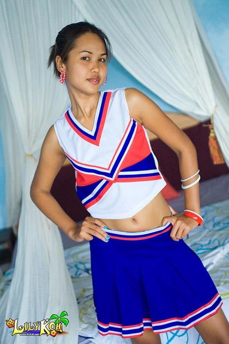 Lily Koh: Delicate Asian teen cheerleader flashes cotton panties