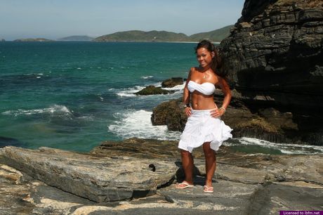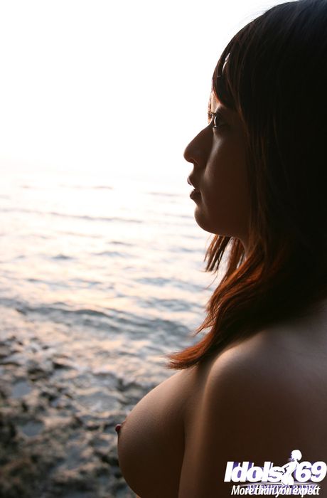 Idols 69: Delightful japanese babe Mari Misaki showing big boobs and hairy pussy on the beach
