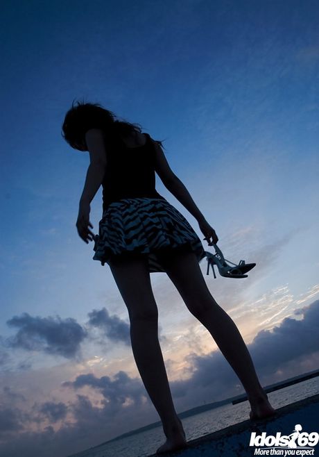 Idols 69: Deluxe japanese hottie Mari Misaki exposes her butt in sexy skirt and masturbates at beach