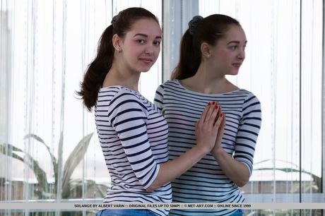 Met Art: Erotic Asian teen Solange shows her tiny tits and toys her pussy in a solo