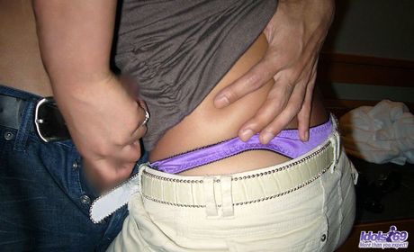 18 Eighteen: Foxy asian young Melody Tan in tight jeans unveiling small tits and pussy in bathroom