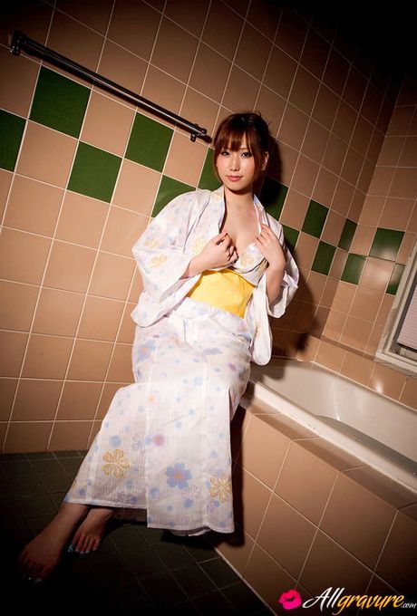 All Gravure: Gorgeous gravure idol babe slowly takes off her white kimono