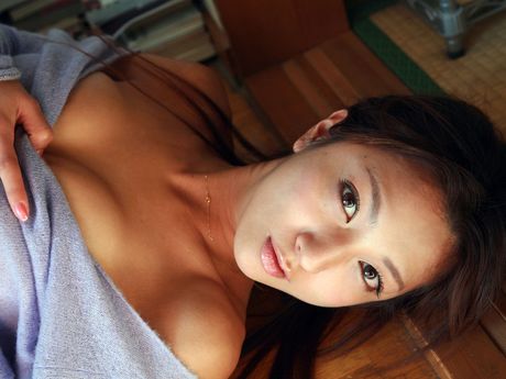 All Gravure: Gorgeous long haired asian model in a white tank top and panties