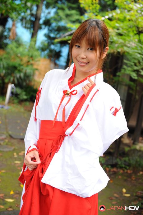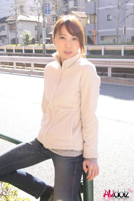 Japan HDV: Handsome babe You Shiraishi poses outdoor in her white coat for camera