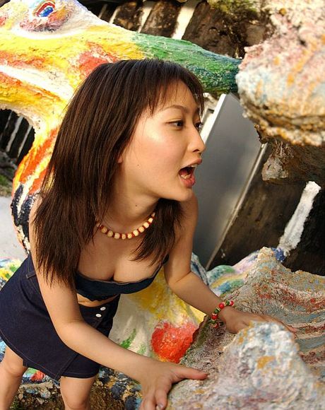 Idols 69: Hot Asian teen model shows off her hot tits and hairy pussy outdoors