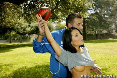 Big Tits In Sports: Hot japanese Asa Akira blows on big shaft and takes a hot cumshot