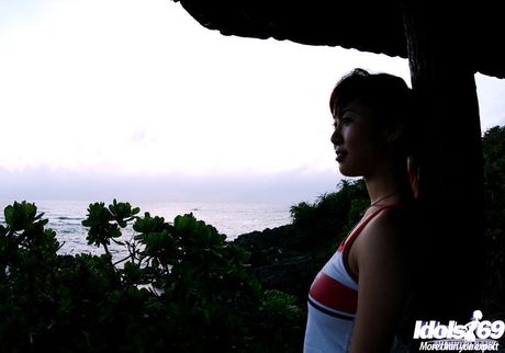 Idols 69: Hot japanese babe Adusa Kyono exposes big boobies and sexy ass at beach