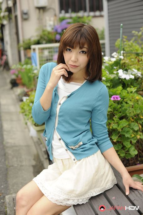 Japan HDV: Hot Juri Kitahara in blue sweater and lace skirt is a perfect model.