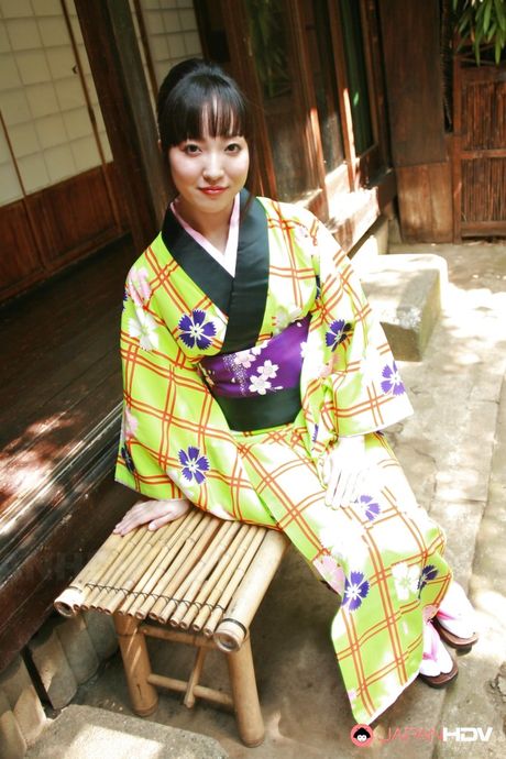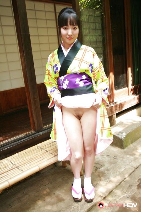 Japan HDV: Japanese girls in yellow kimono shown her hairy twat