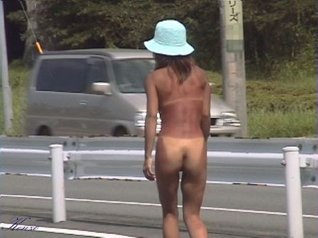 City Invasion: Japanese teen amateur strips and shows her hairy cunt in the public park
