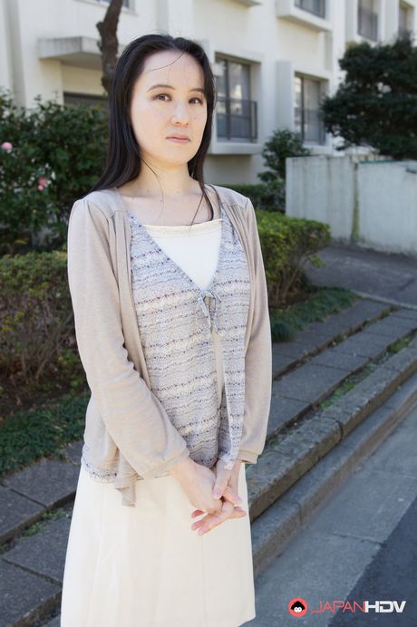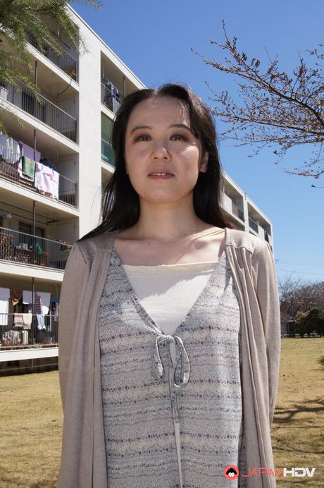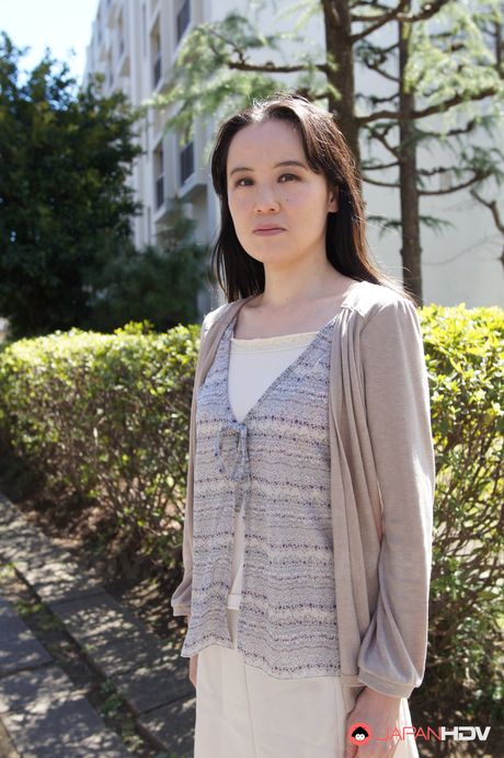 Japan HDV: Junko Nishimura is an Asian lady presenting her new outfit outdoors.