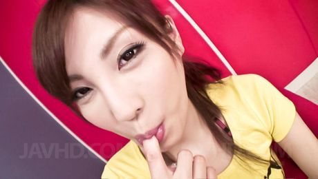 Ferame: Kana Miura Asian sucks her figer and fellow hard dong with skill