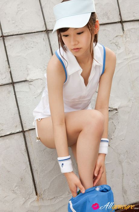 All Gravure: Kana Yuuki Asian takes tennis skirt off while playing with ball