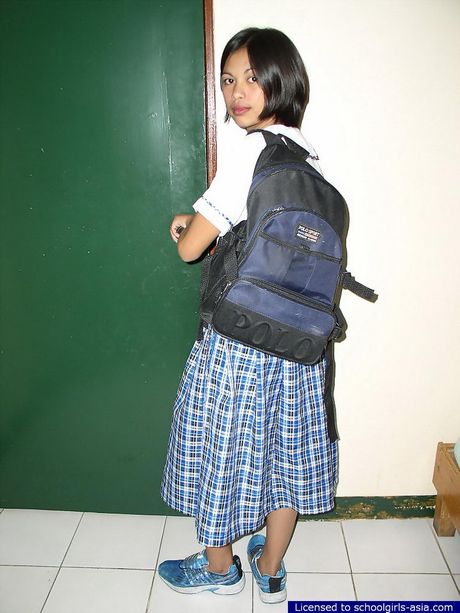 Schoolgirls Asia: Lonely cutie flashing her shaved love holes after school